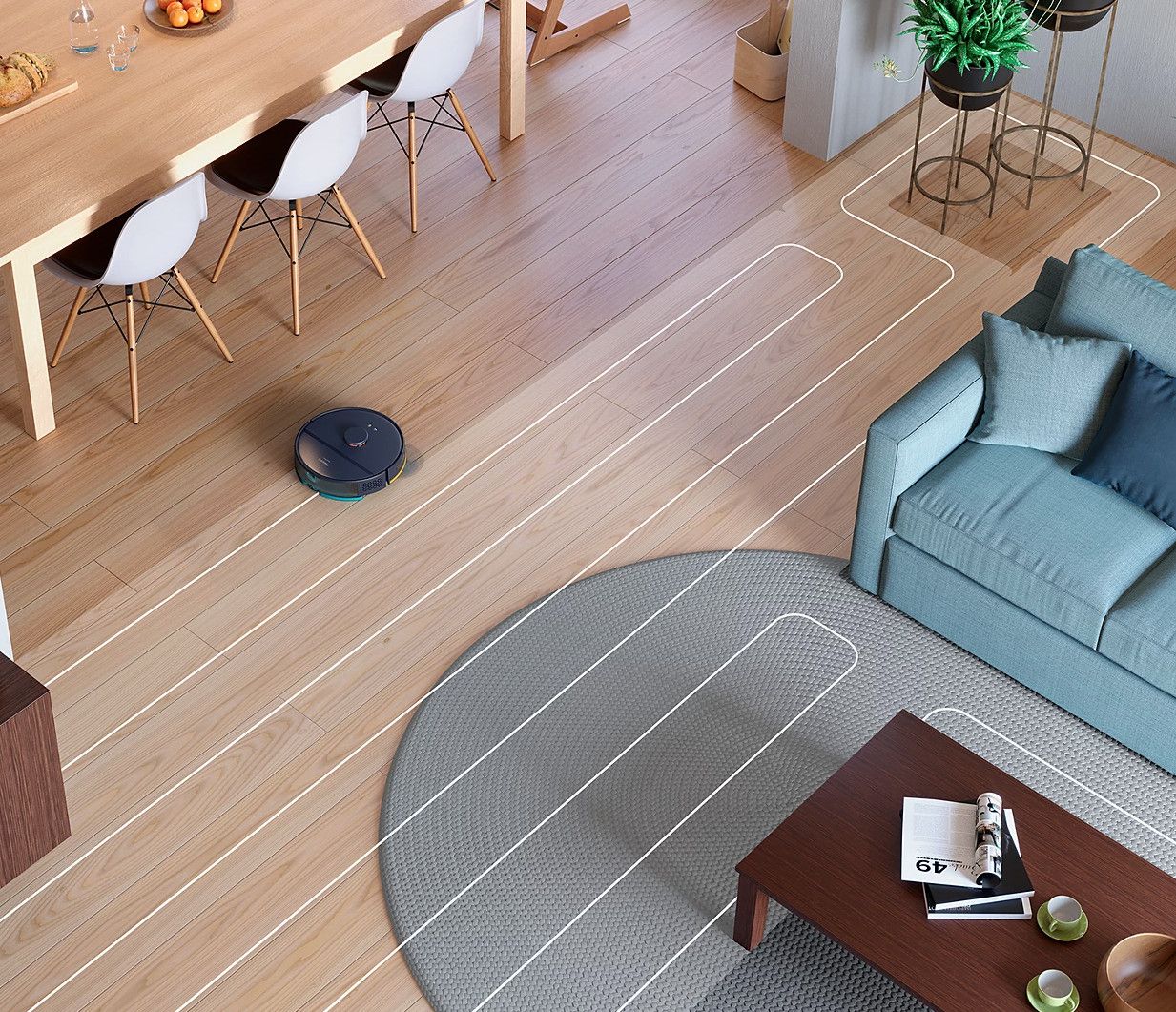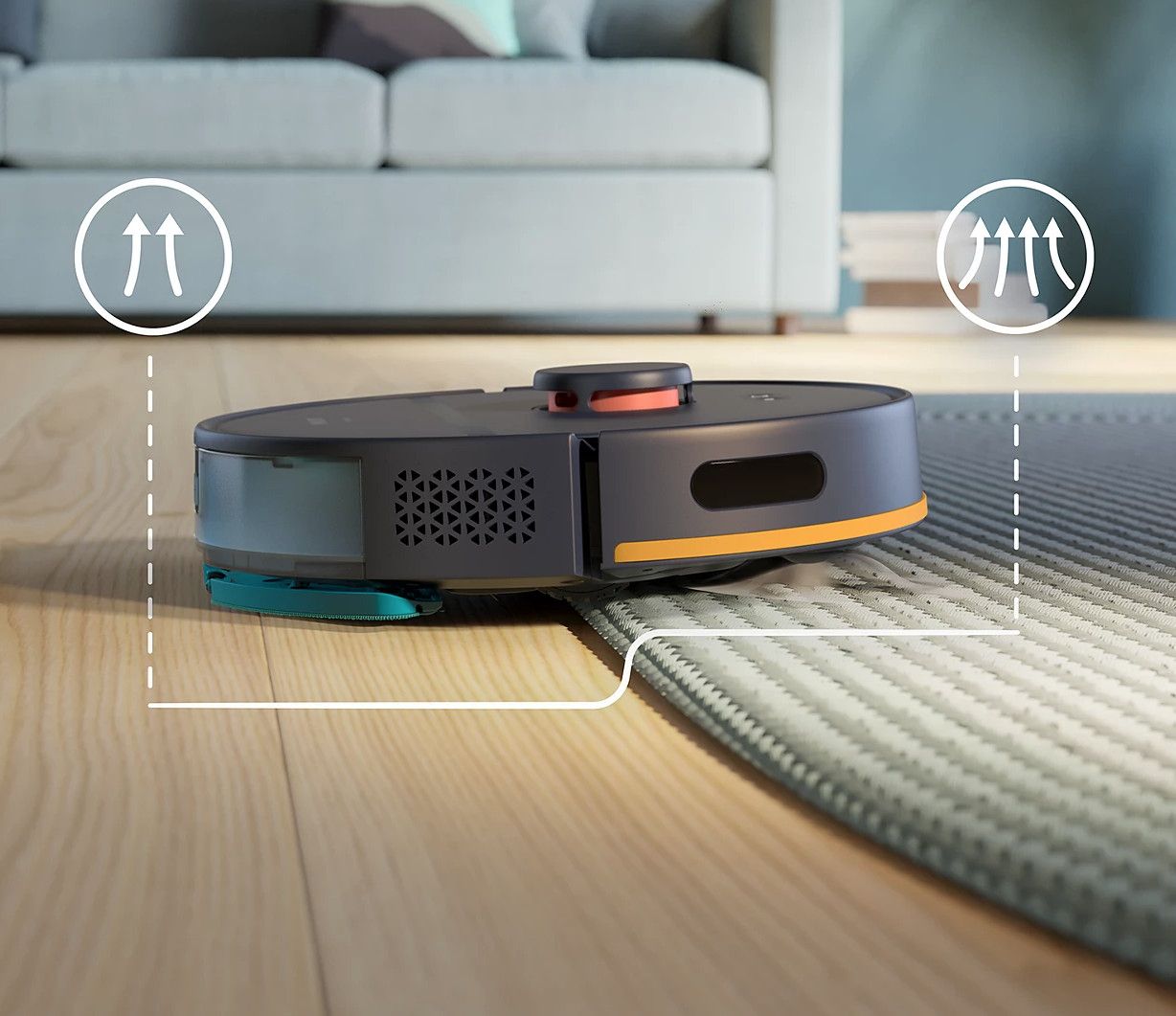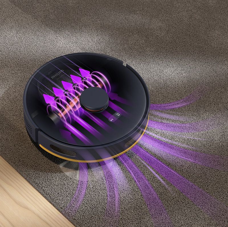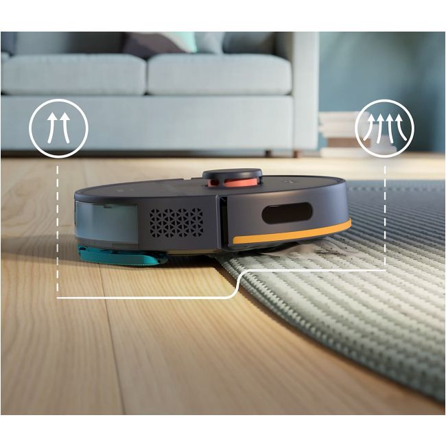 Robot automatycznie zwiększa moc ssania, gdy znajduje się na dywanie, aby zebrać drobne cząsteczki kurzu ukryte głęboko w dywanie.