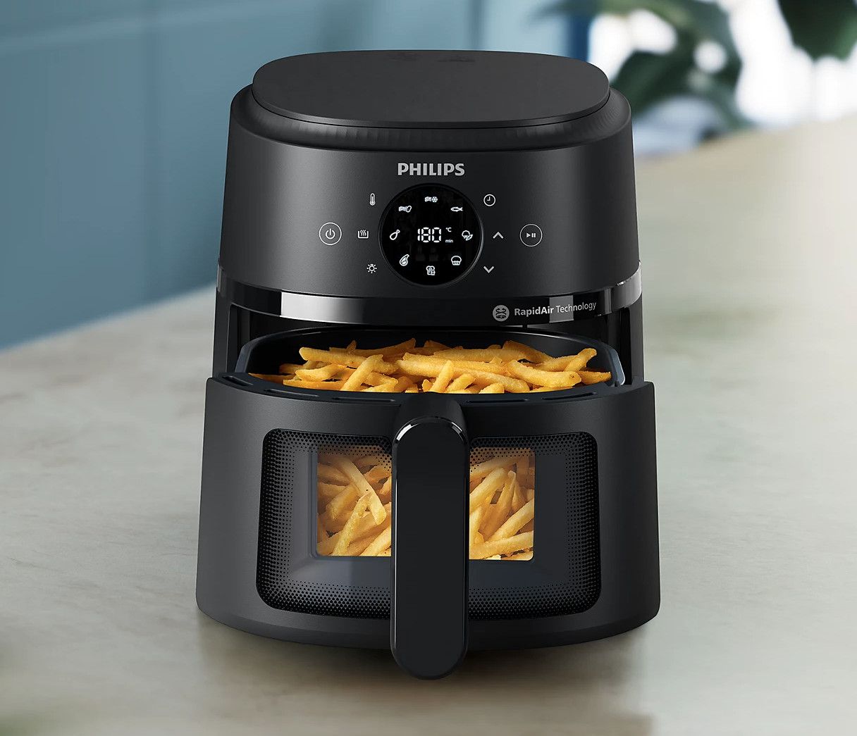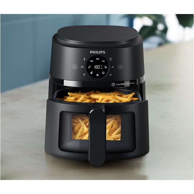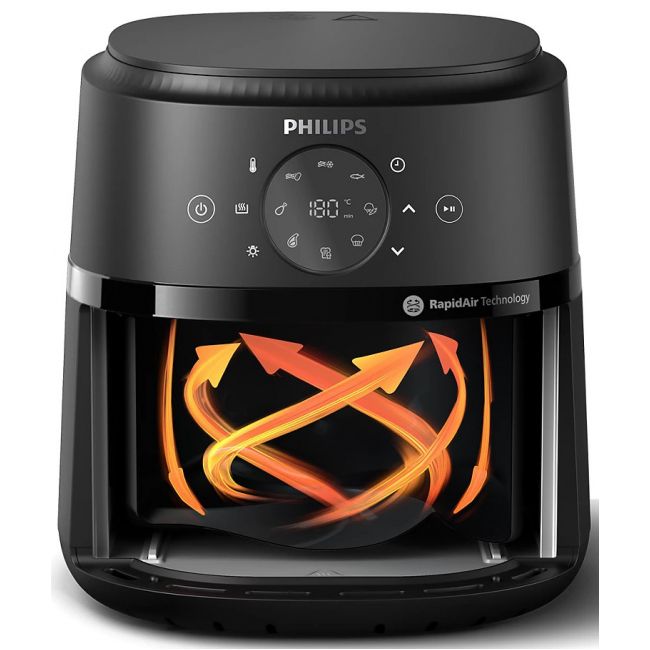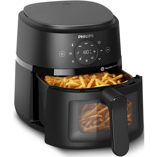 Kompaktowa konstrukcja idealnie sprawdzi się w każdej kuchni – dużej i małej. Mieści do 400 g frytek, 4 udka kurczaka lub 400 g warzyw w patelni o pojemności 3,2 litra.
