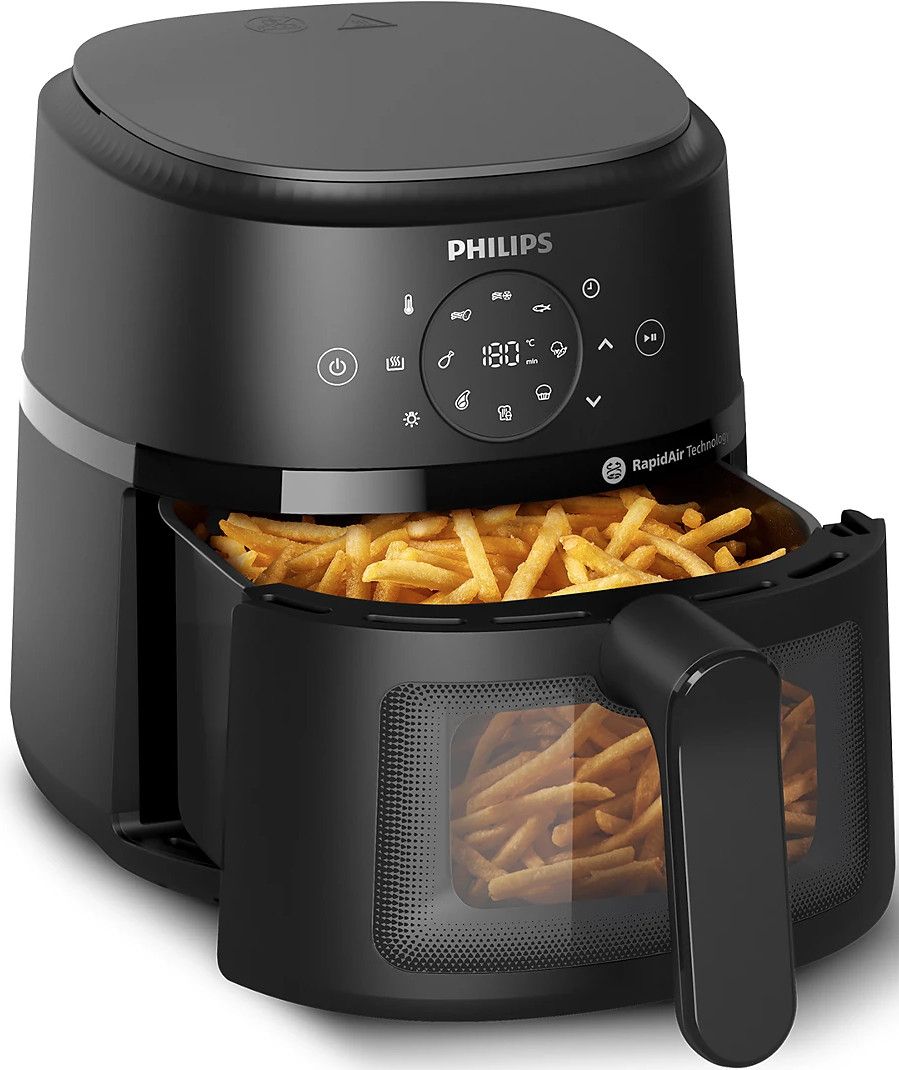 Chrupiące na zewnątrz, delikatne w środku. Unikalna technologia RapidAir oszczędza czas i energię, nie tracąc przy tym smaku. Obserwuj przez okno gotowania, jak Twoje ulubione składniki zamieniają się w pyszne jedzenie w niecałe 15 minut.