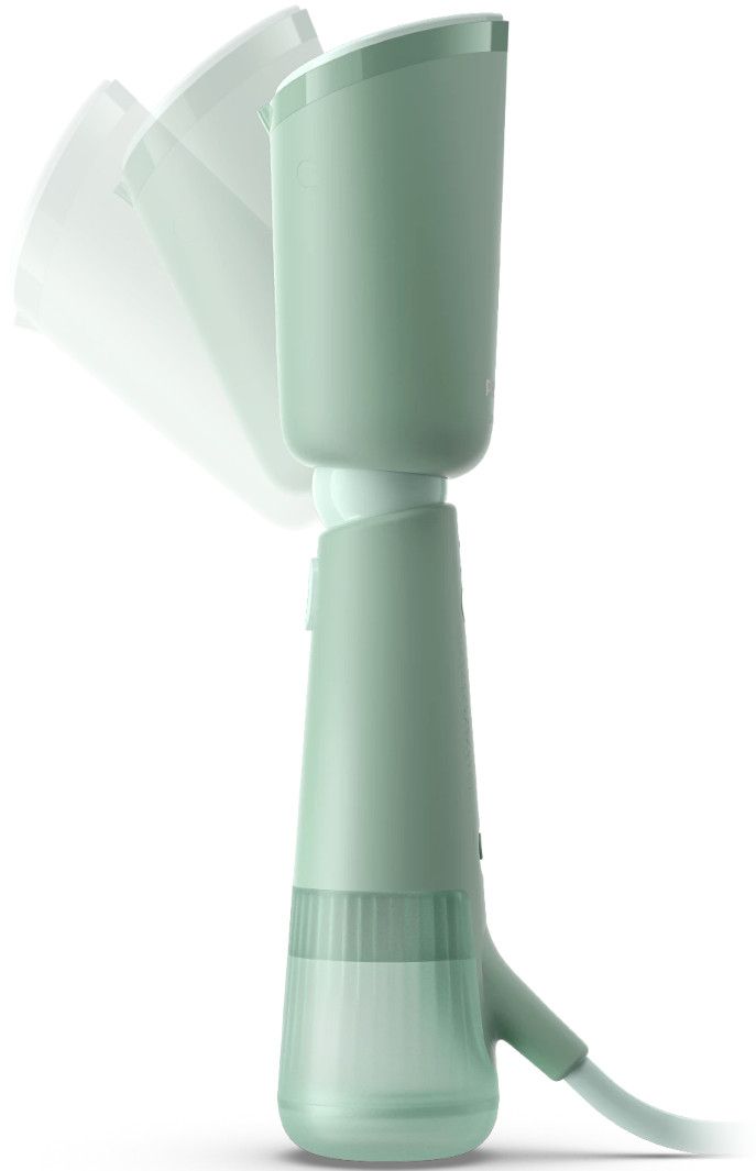 Parownica ręczna Philips z serii 5000 jest gotowa do wytwarzania pary w każdej chwili. Wystarczy ustawić głowicę na parowanie ubrań na wieszaku lub płaskiej powierzchni i rozpocząć prasowanie za pomocą pary. Regulowana, odchylana głowica oznacza, że urządzenie można łatwo spakować w podróż oraz szybko i łatwo schować w domu.